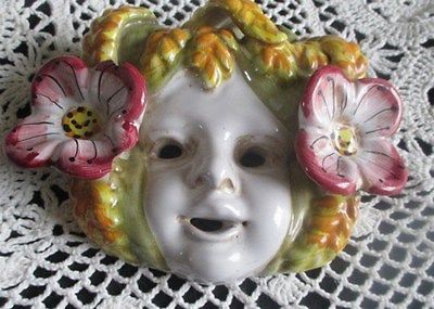 Title (ebay affiliate link): CAPODIMONTE WALL HANGING CHILD'S HEAD FLORALS & LEAVES GLAZED