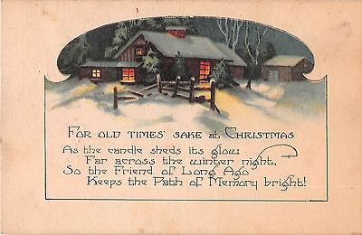 Lights Shining in Windows of Rural Snowy Home-1932 Art Deco Christmas Postcard