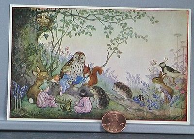 Vtg. Bunnies Rabbit Hedgehog Owl "Bedtime Story" Molly Brett Postcard-UNUSED