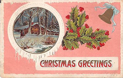 Title (ebay affiliate link): Holly & Bell By Cabin in the Snowy Woods on Old Christmas Postcard - No. 31E