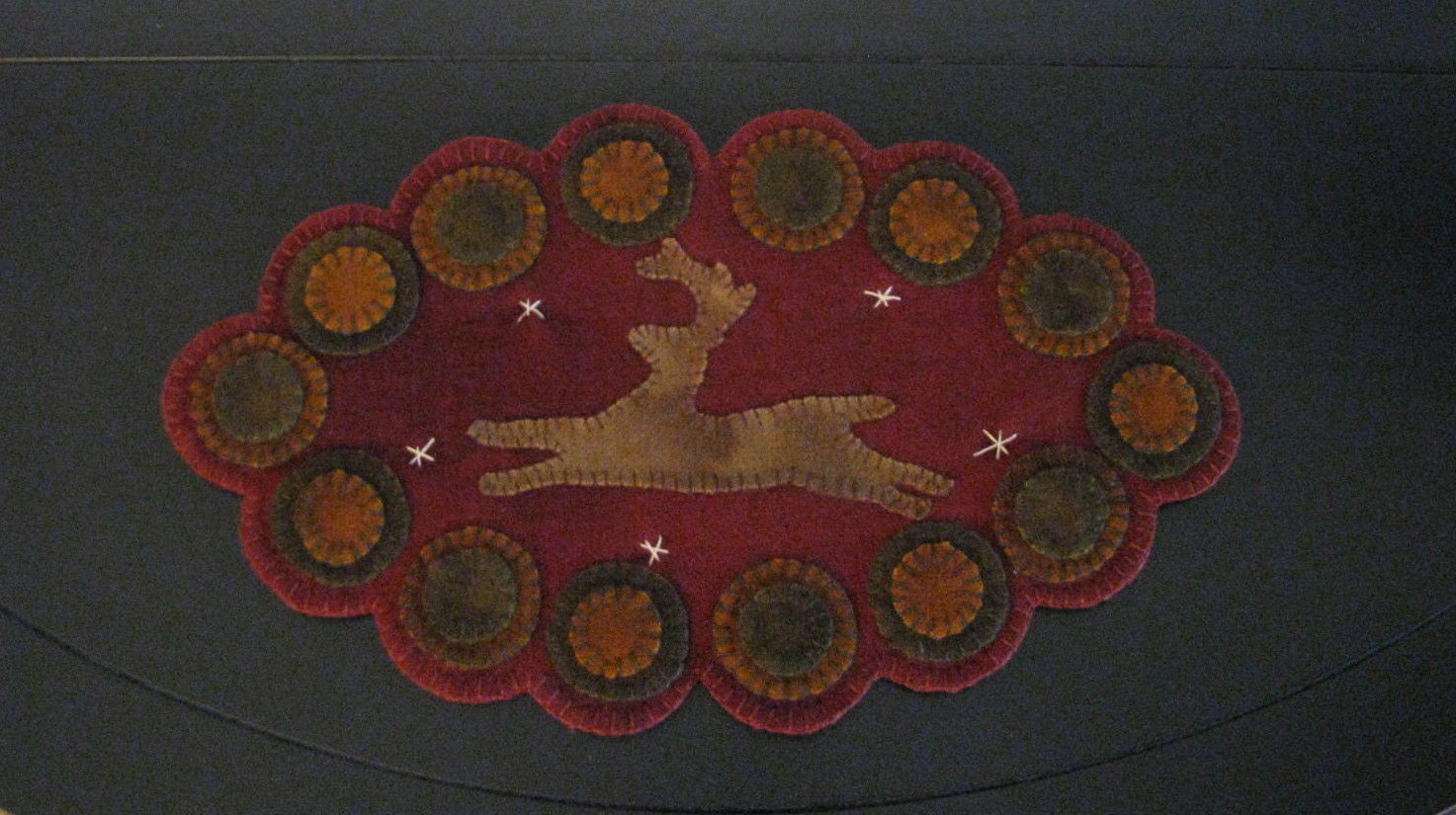 Primitive Wool Christmas Penny Rug ~ Reindeer ~ 12-1/2 Inches by 7-1/2 Inches