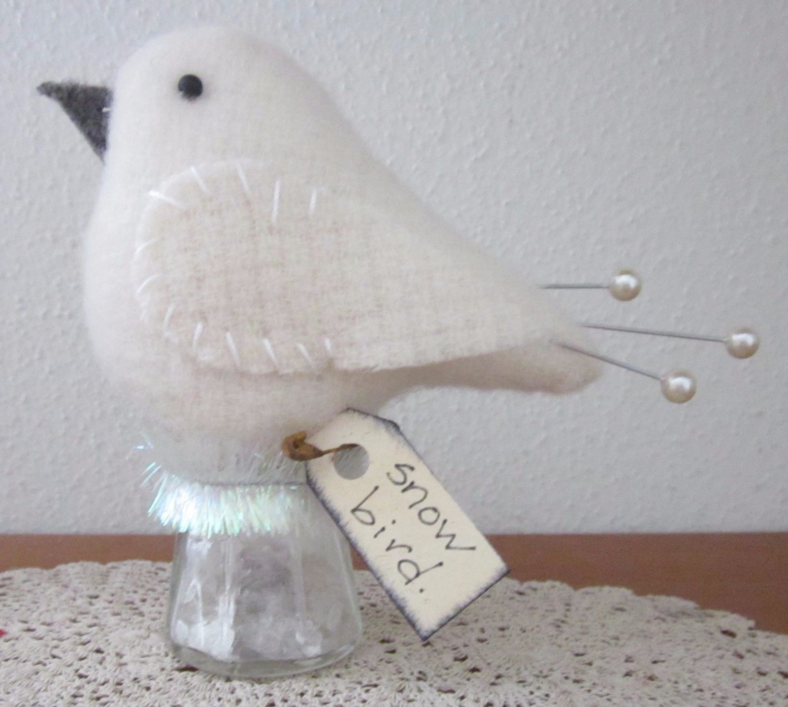 Title (ebay affiliate link): PRIMITIVE WOOL DOVE WHITE SNOW BIRD SALT SHAKER MAKE DO PIN CUSHION PFATT
