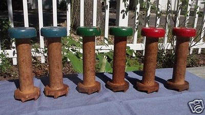 Title (ebay affiliate link): LOT 6 VINTAGE WOODEN MILL BOBBINS COUNTRY DECOR WOOD PRIMITIVE