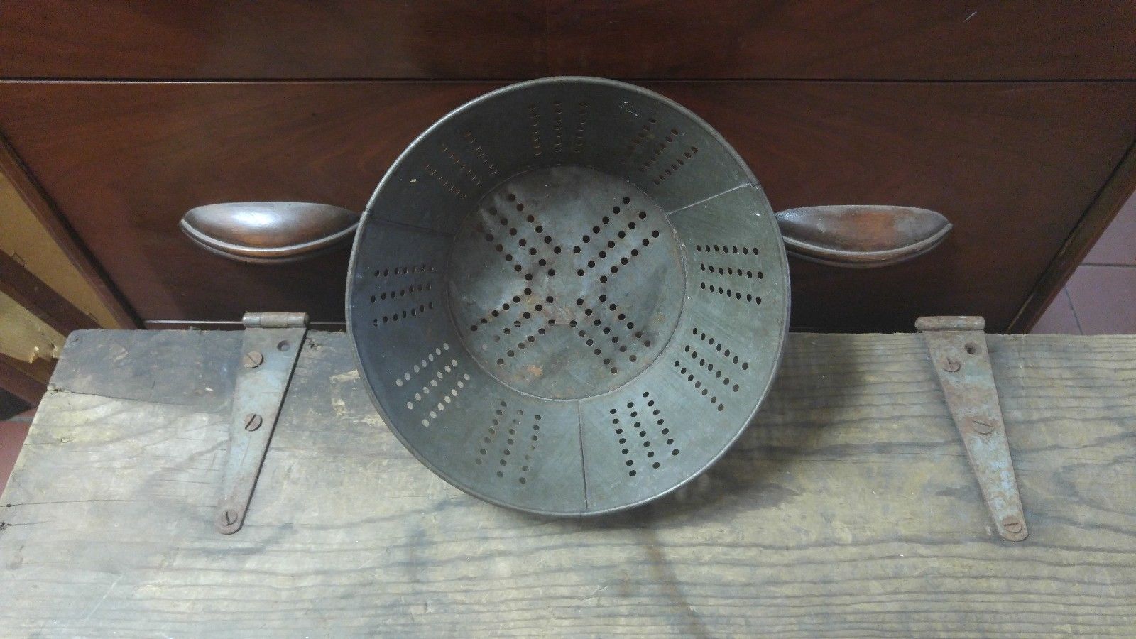 Title (ebay affiliate link): Antique tin Strainer Colander Lovely Patina Primitive Appeal
