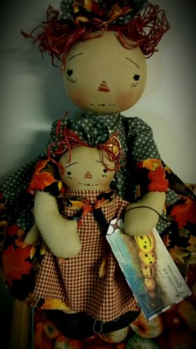 Primitive folk art raggedy ann doll w/dolly/fall/autumn leaves/17"