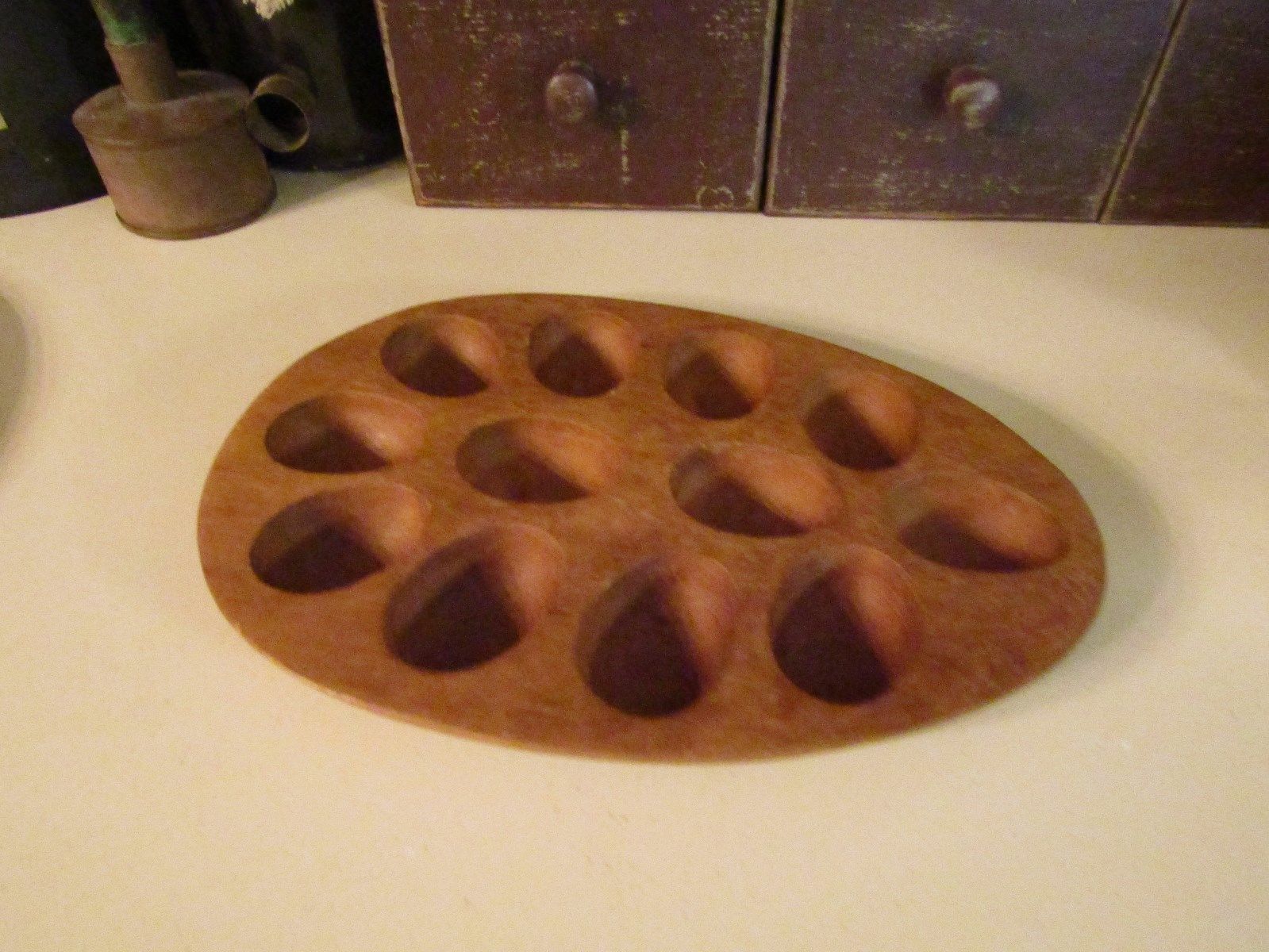 VINTAGE WOODEN EGG/DEVILED EGG PLATE/SERVING TRAY-HOLDS 1 DOZ. EGGS