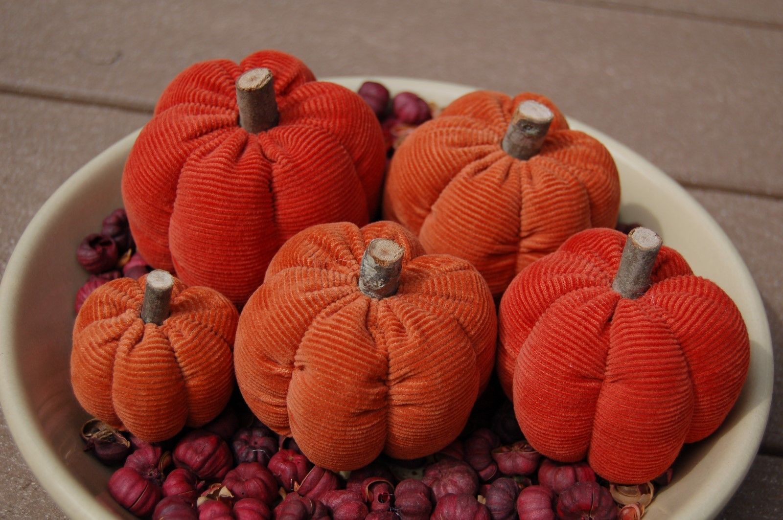 Title (ebay affiliate link): Primitive Fall Halloween Orange Corduroy Pumpkin Ornies, 2 Diff Shades