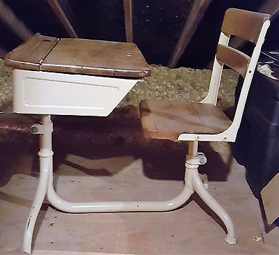 Title (ebay affiliate link): Vtg Child's Elementary School Desk Swivel Chair Wood/Metal Flip Top Antique