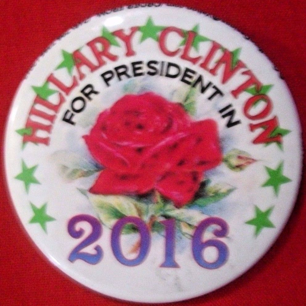 Title (ebay affiliate link): ROSES Badge LIMITED EDITION Pin HILLARY Pinback Button 2016 Trump Campaign