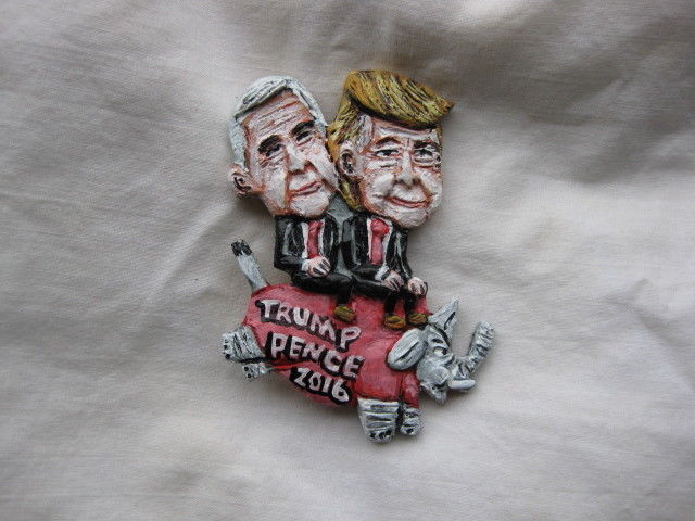 Title (ebay affiliate link): Donald Trump & Mike Pence riding Elephant 2016 Presidential Campaign Novelty Pin
