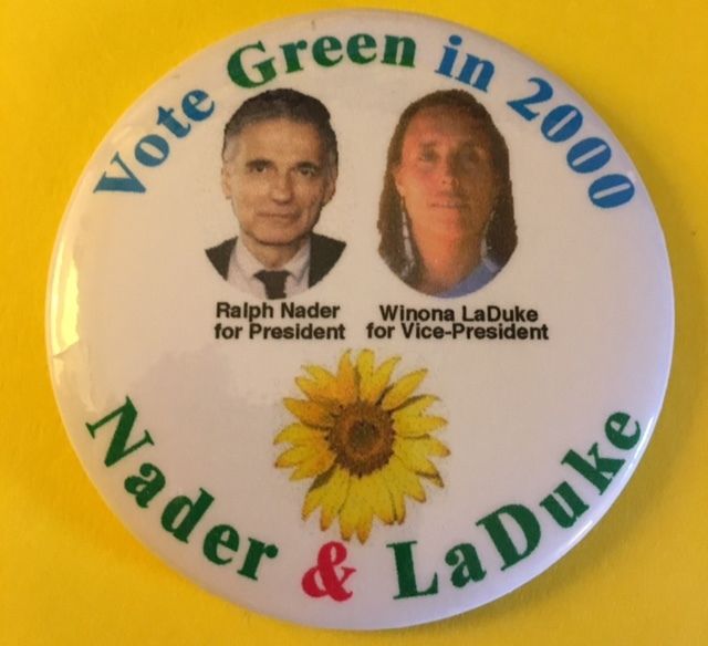 Title (ebay affiliate link): Nader and LaDuke Vote Green in 2000 Political 3 Inch Campaign Pinback Button