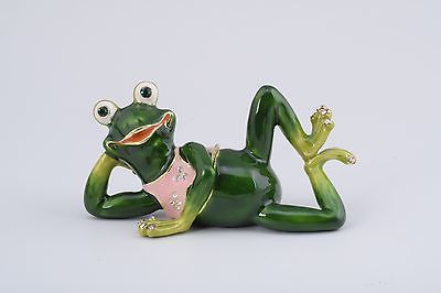 Frog in yoga Trinket box by Keren Kopal Austrian Crystal Jewelry box Faberge