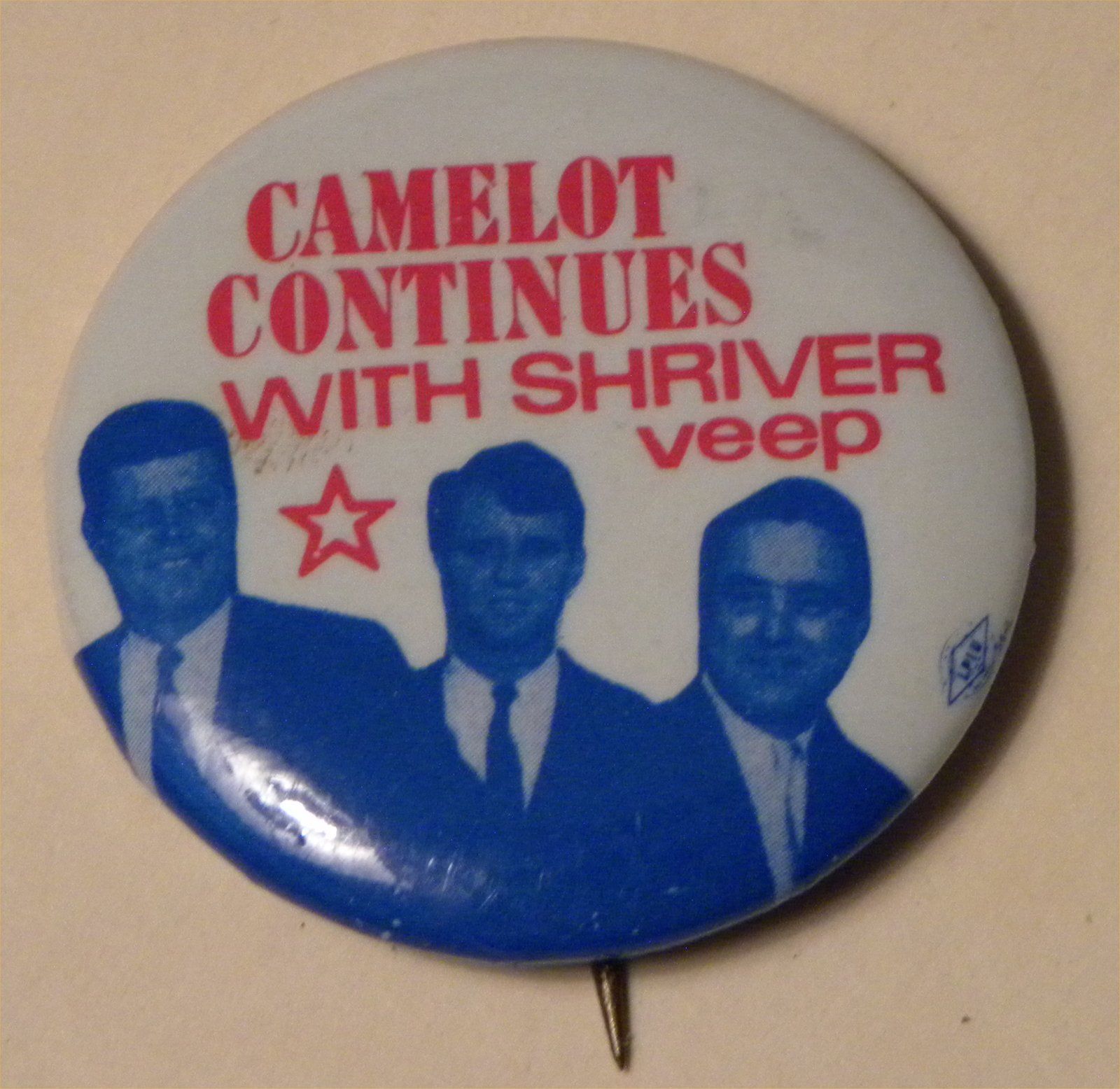 Title (ebay affiliate link): 2912. Political Button 1972 "Camelot Continues w/ Shriver Veep" JFK RFK McGovern
