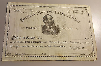 Title (ebay affiliate link): President Garfield- Memorial Association Member Certificate -Rare
