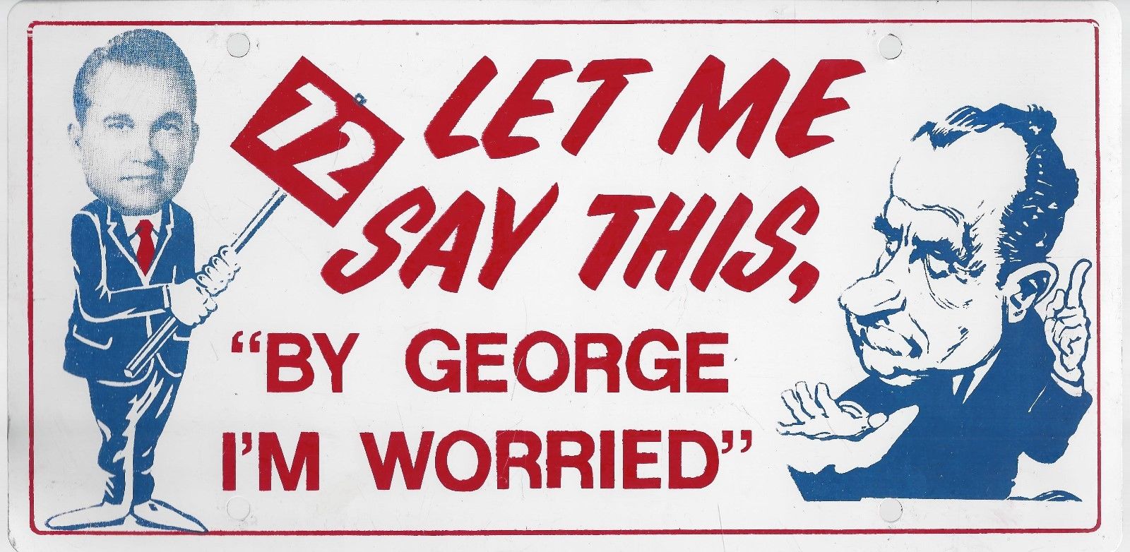 Title (ebay affiliate link): 1968 GEORGE WALLACE - NIXON BY GEORGE CARTOON CAMPAIGN LICENSE PLATE ATTACHMENT