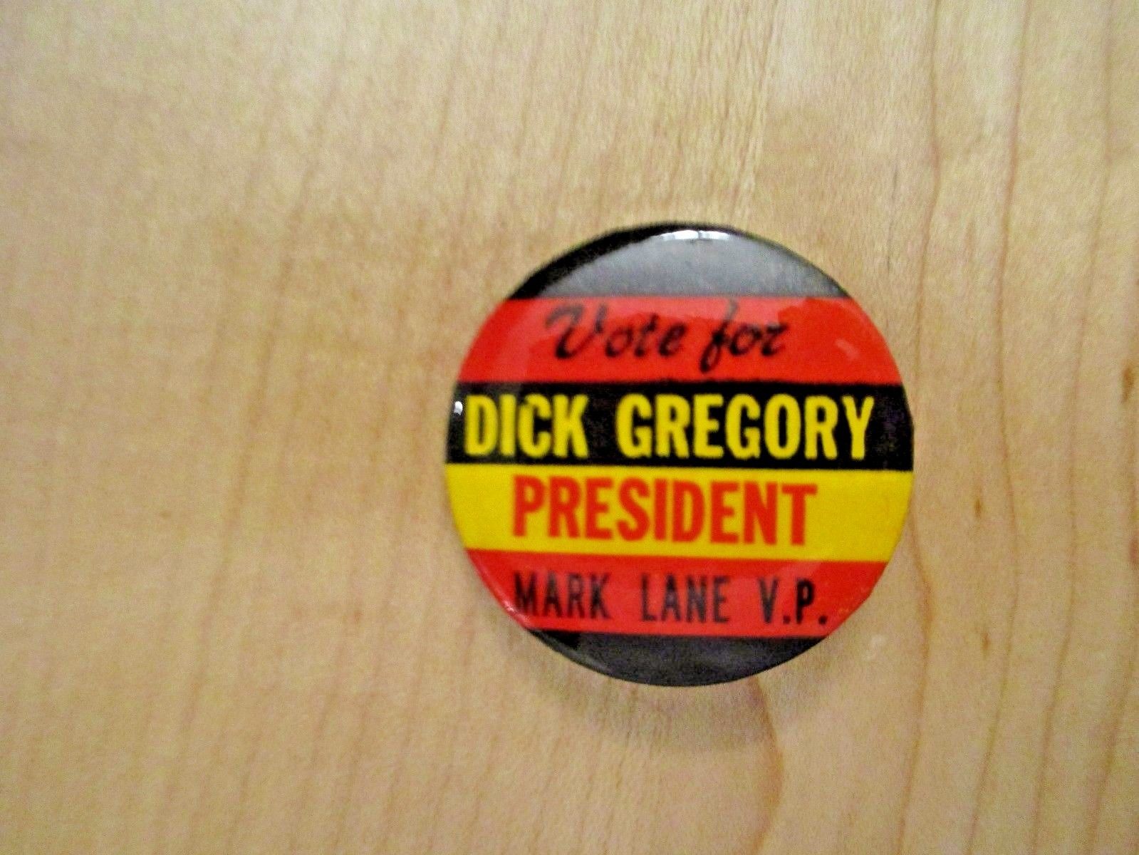 Title (ebay affiliate link): VINTAGE DICK GREGORY FOR PRESIDENT MARK LANE VP VOTE FOR CAMPAIGN BUTTON 1968