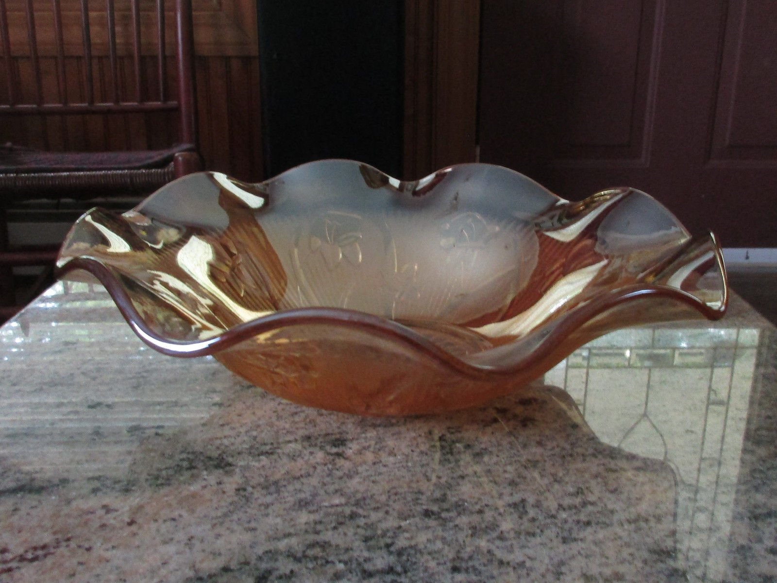 Title (ebay affiliate link): Jeannette Iridescent Depression Glass Iris & Herringbone 11 1/2" Console Bowl