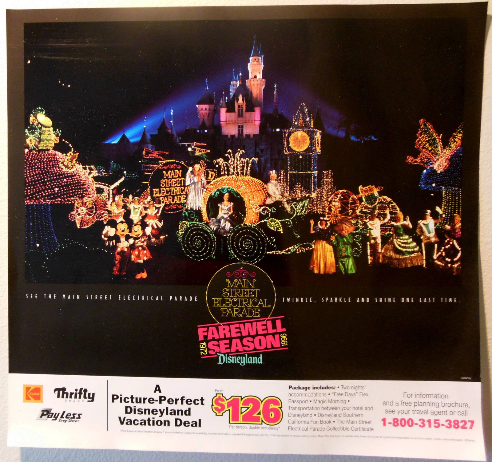 WALT DISNEY DISNEYLAND FAREWELL POSTER ELECTRIC LIGHT PARADE 1990's