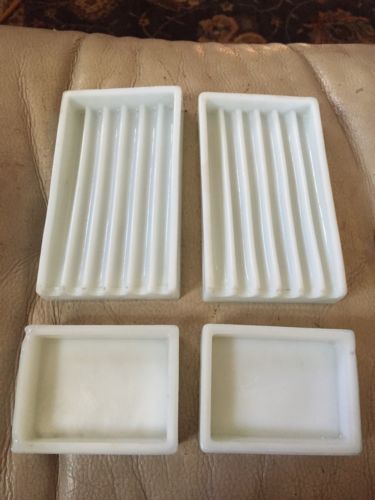 VINTAGE MILK GLASS DENTAL INSTRUMENT & BURR TRAYS