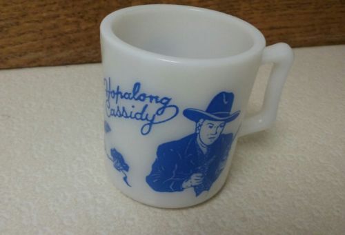 Vintage HOPALONG CASSIDY MUG - Milk Glass - w/ Blue Design