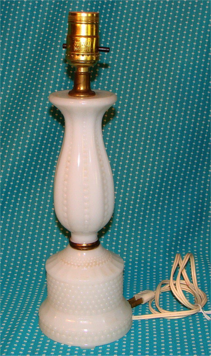 Title (ebay affiliate link): Vtg White Milk Glass Hobnail Table Lamp Vanity Dresser 14" Working VgC