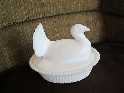 Vintage Milk Glass Turkey Dish Covered w/ Lid McKee?