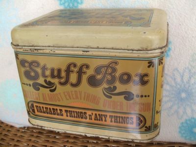 VINTAGE CHEIN 'STUFF BOX' COLLECTORS TIN,DECORATED