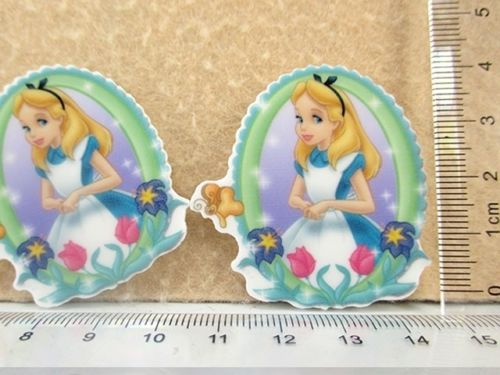 Title (ebay affiliate link): 5 Alice in wonderland Disney Resin Flake Flatback Hair Bow Center Plastic Planar