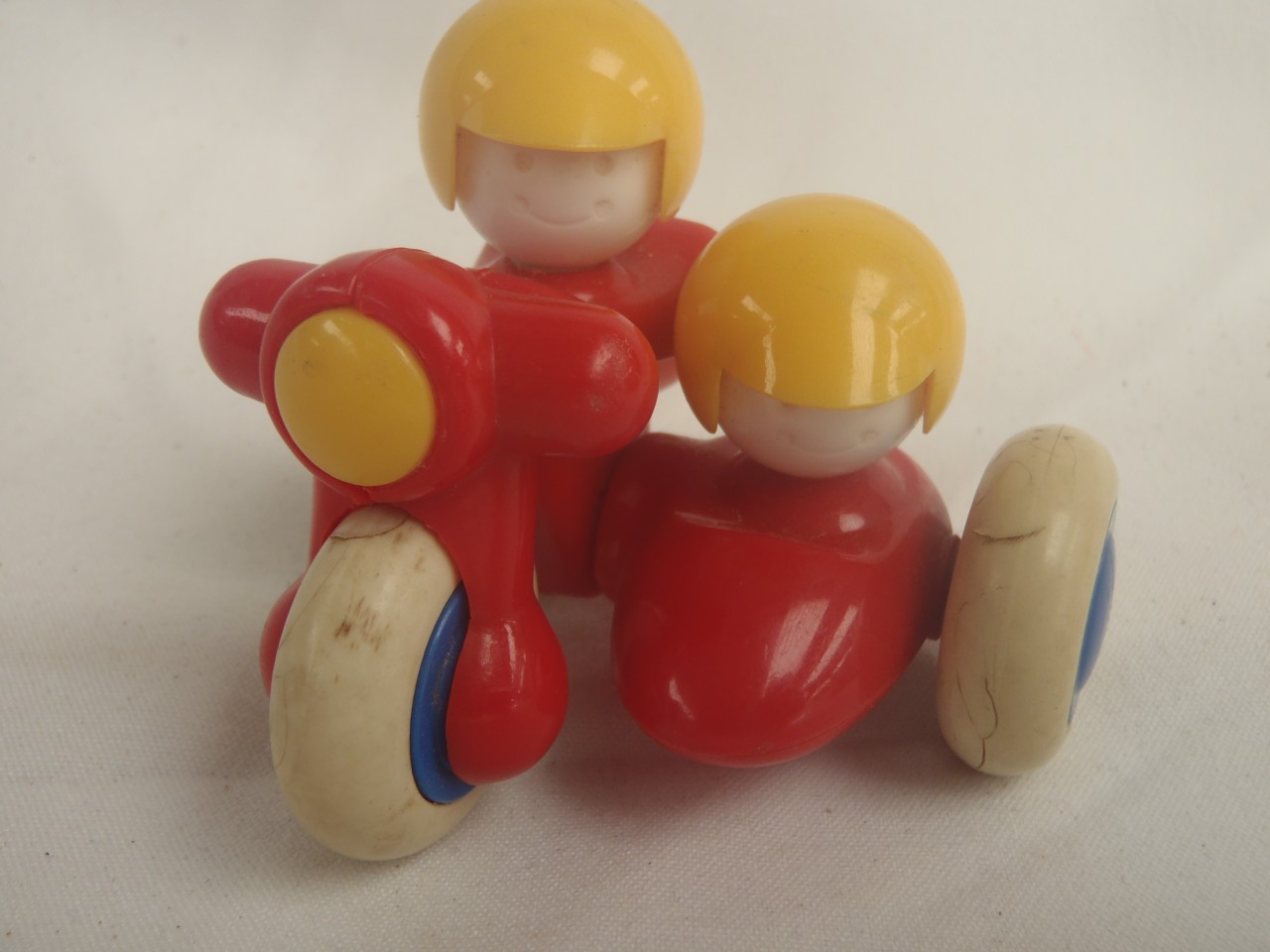 VINTAGE TOY.MOTORCYCLE AND SIDECAR.BOOTS