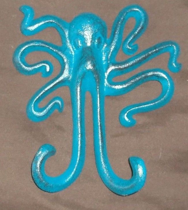 Title (ebay affiliate link): Large Cast Iron Octopus Ocean Blue Coat & Towel Hook 6 " Long 5 1/2" Wide