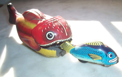 VINTAGE TIN TOY MAGIC FISH & LIL FISH JAPAN~NO RESERVE