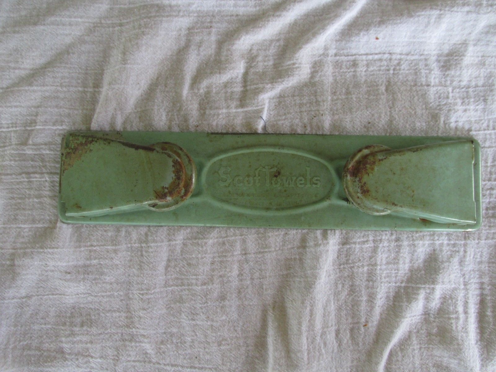 Title (ebay affiliate link): Vintage 1950's SCOTT Towels OLD GREEN Metal Paper Towel Holder Hanger