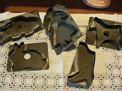 ANTIQUE PRIMITIVE 5 TIN FLAT BACK COOKIE CUTTER SOLDERED STRAP HANDLE