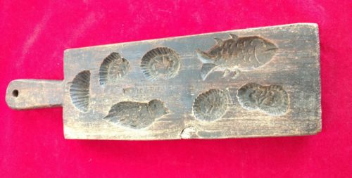 Antique Primitive Hand Carved Wood Butter Mold LARGE 15.1/2" Inches Long