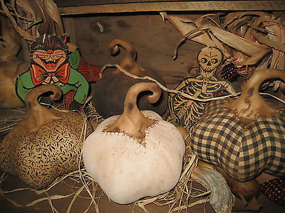 Primitive Halloween Grungy Folk Art Fall Pumpkins ~4 Smalls Old & Early Look ~