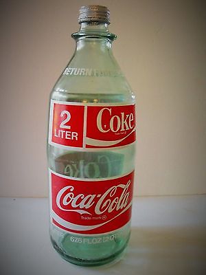 Title (ebay affiliate link): 1970's COCA COLA 2 LITER 67.6 oz. GREEN GLASS BOTTLE WITH LID