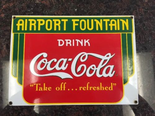 Title (ebay affiliate link): Vintage Reproduction Porcelain Enamel Airport Fountain Coca-cola Sign