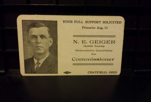 Title (ebay affiliate link): 1924 N. E. Geiger Democratic Candidate Card Chatfield, Ohio Crawford County