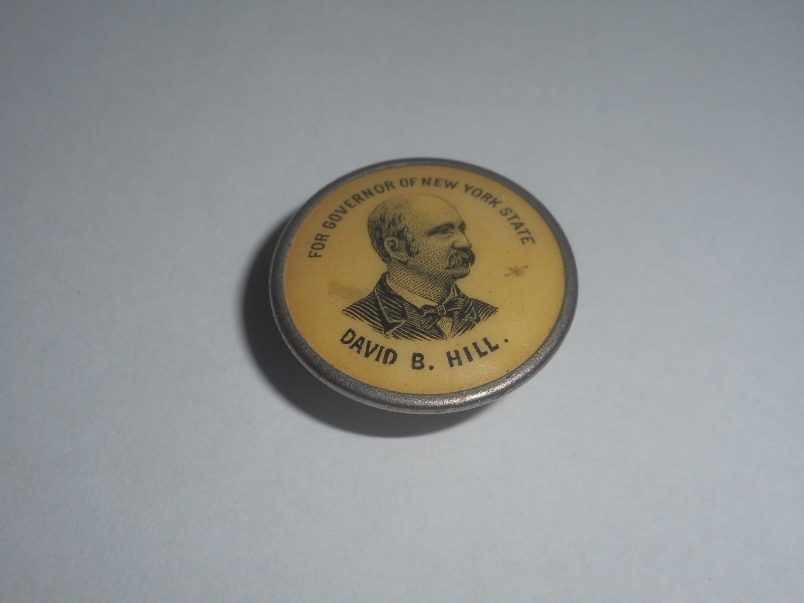 Title (ebay affiliate link): RARE DAVID B HILL LAPEL BUTTON POLITICAL BUTTON FOR GOVERNOR OF NEW YORK STATE