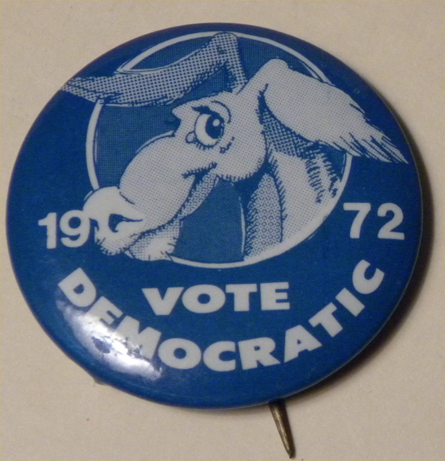 Title (ebay affiliate link): 2993. Political Button 1972 "Vote Democratic" (McGovern) Smiling Donkey Cartoon
