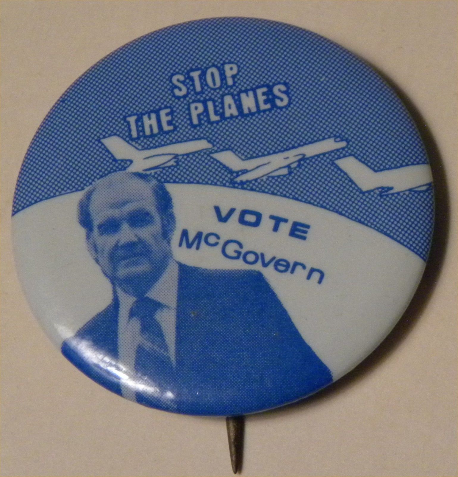 Title (ebay affiliate link): 2997. Political Button 1972 "Stop the Planes, Vote McGovern" End Bombing of Laos