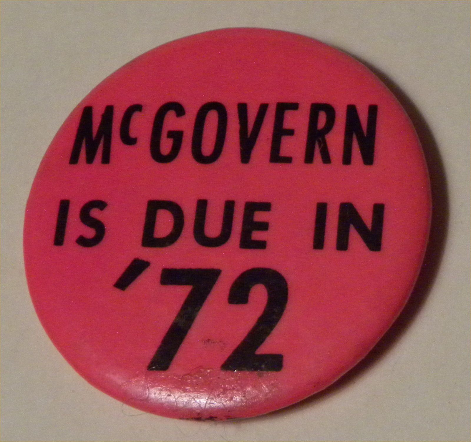 Title (ebay affiliate link): 3013 Political Button 1972 "McGovern is Due in '72" Presidential Campaign Dayglo