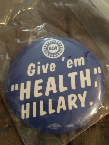 GIVE 'EM "HEALTH" HILLARY PIN UAW