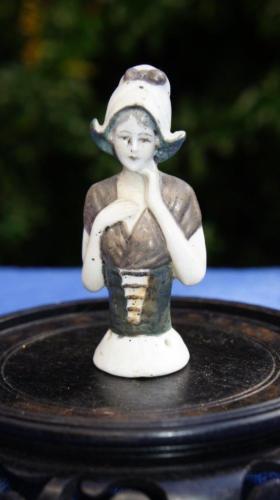 Title (ebay affiliate link): Charming Unusual Dutch Girl Antique Porcelain Half Doll Pin Cushion