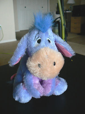 EEYORE Plush, Long Hair, Disney Store, Blue/Purple, 8 1/2", EUC