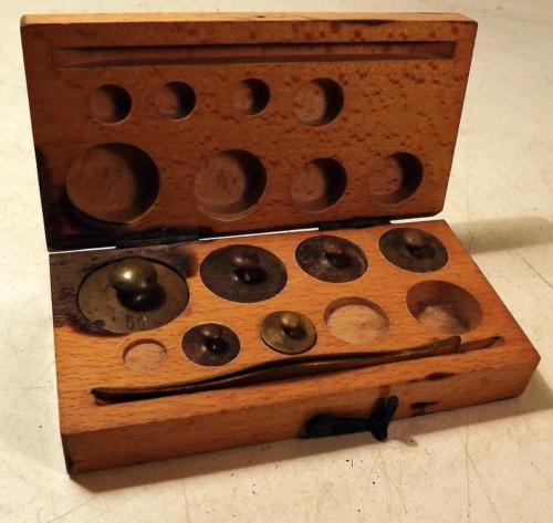 Title (ebay affiliate link): Antique Vtg Partial Boxed Set EMPIRE Brass Analytical Scale Weights c1930s