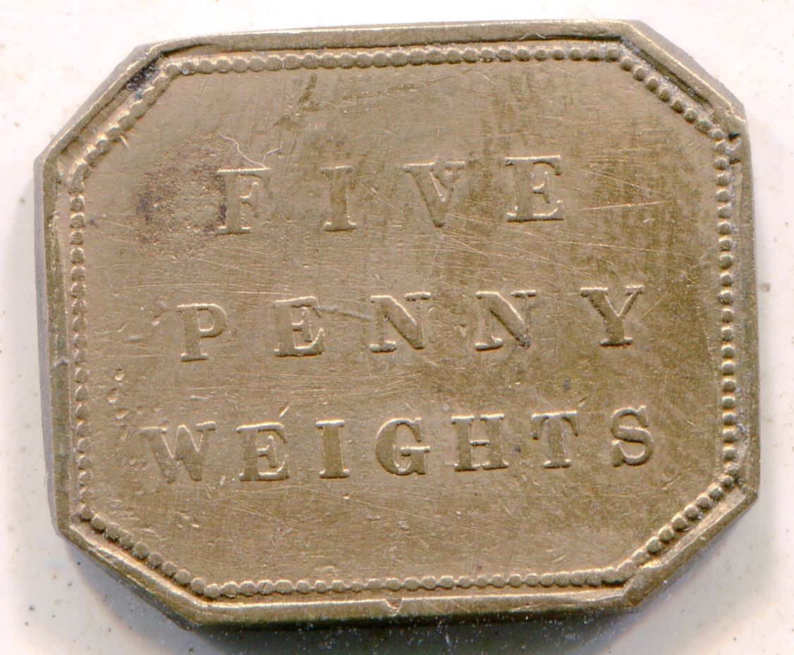 UK Brass Apothecary counter weight 5 Penny wts W & T.A. lotaug6521