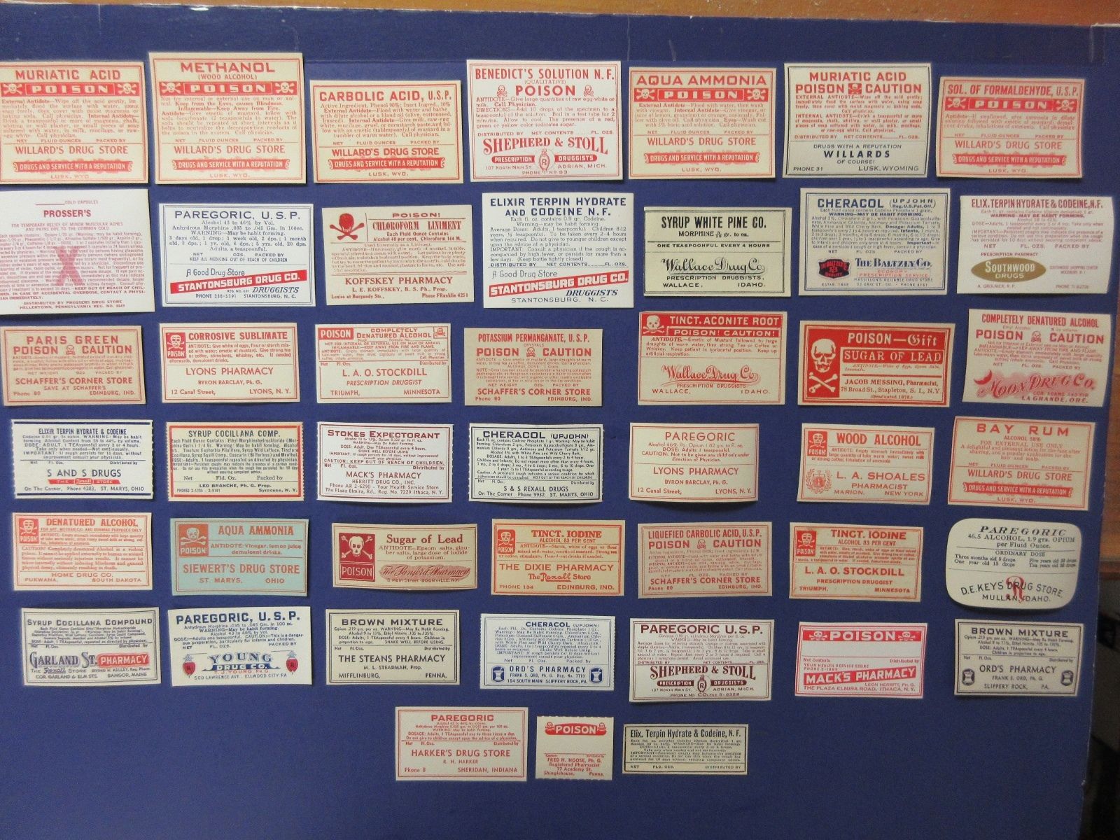 Title (ebay affiliate link): 45 OLD POISON & NARCOTIC MEDICINE PHARMACY BOTTLE LABELS=VINTAGE LOTS