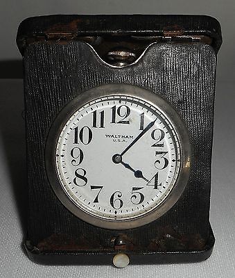 ANTIQUE 1908 WALTHAM SIZE 16 TRAVELER CLOCK 7 JEWELS, IN ORIGINAL CASE, WORKING!