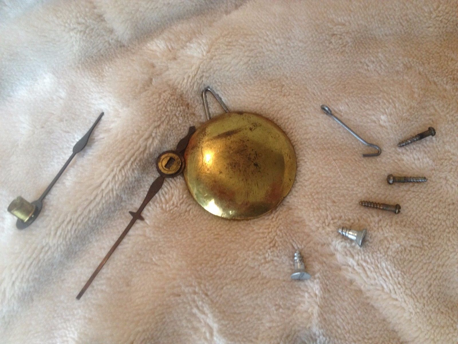 Antique Clock pendulum bob 87 grams & clock hands & bonus clock parts